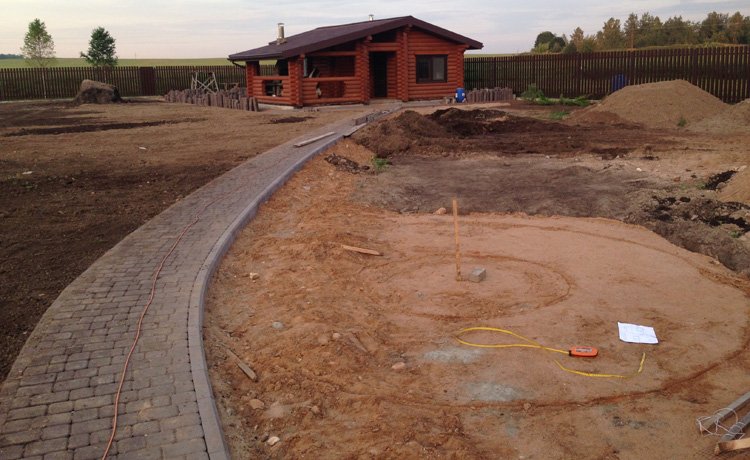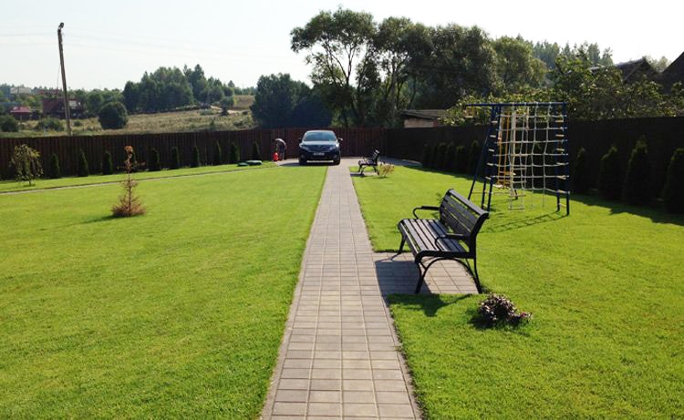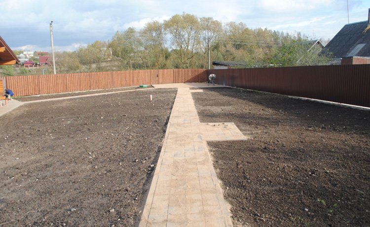 Работа включает в себя: протравка сорняков гербицидами, вспахивание земли, подсыпка плодородного грунта, укладка сетки от кротов, выведение необходимого уровня земли по отметкам, трамбовка почвы, посев газона (укладка рулонного газона), внесение удобрений, повторное уплотнение земли.